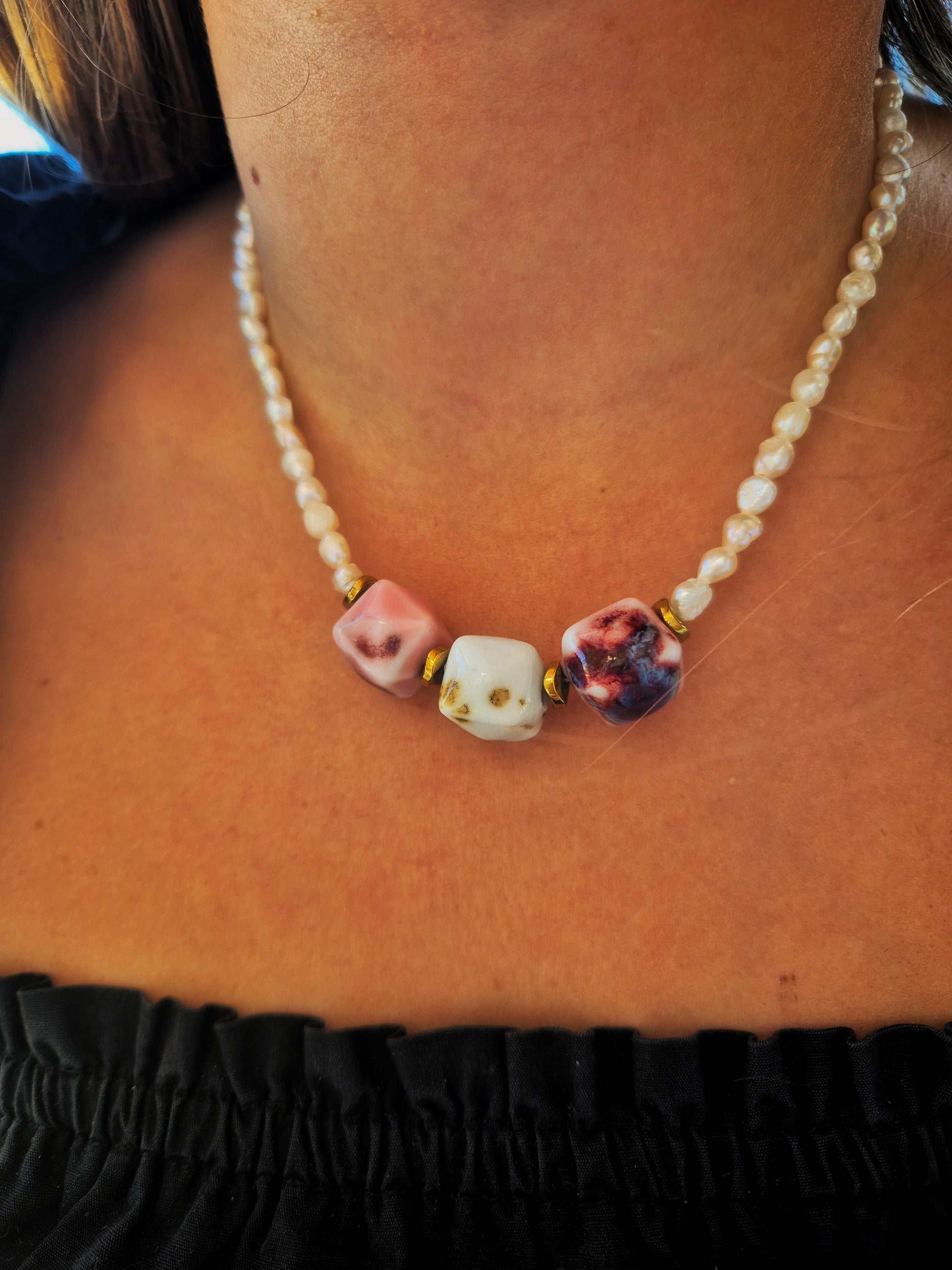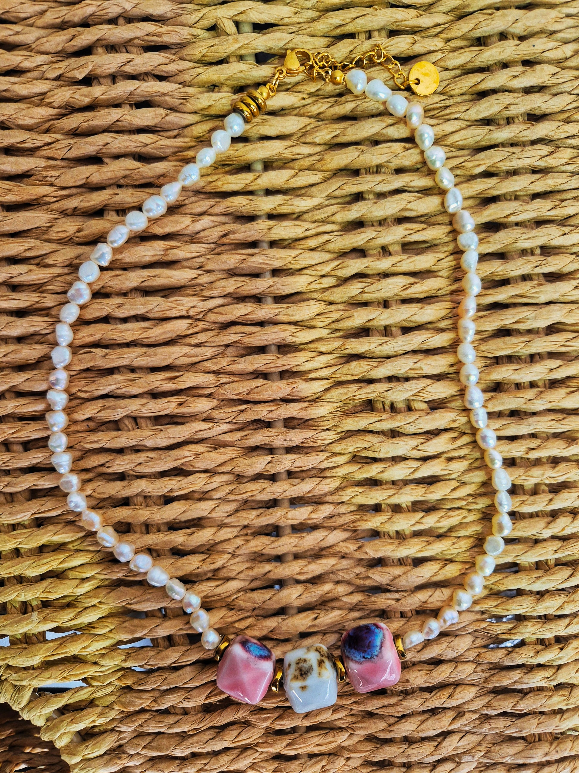 Material: cerâmica, pérolas de água doce e aço inoxidável.